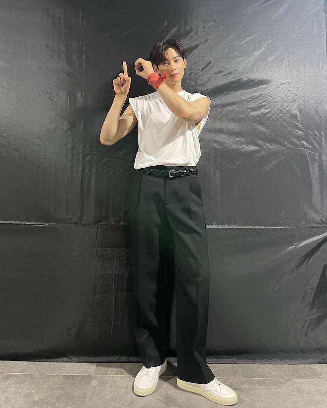 사진 속 차은우는 얼굴 천재다운 훈훈한 외모와 작은 얼굴, 큰 키, 남다른 비율을 자랑하고 있다.