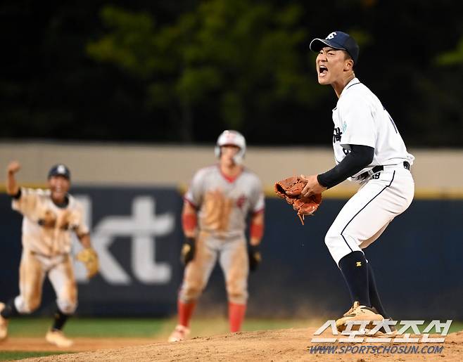 제77회 청룡기 전국고교야구선수권 대회 결승전 충암고와 유신고의 경기가 25일 목동야구장에서 열렸다.유신고가 승리하며 청룡기 우승을 차지했다. 유신고 조영우가 9회초 경기를 끝내며 환호하고 있다. 목동=허상욱 기자wook@sportschosun.com/2022.07.25/