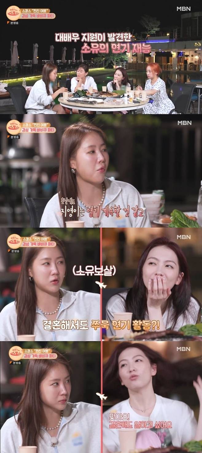 이어 소유는 "지영이는 결혼해도 일을 계속하고 있을 거 같다"고 말했다. 강지영은 "맞아. 결혼해서 일은 계속 하고 싶어"라며 고개를 끄덕였다.