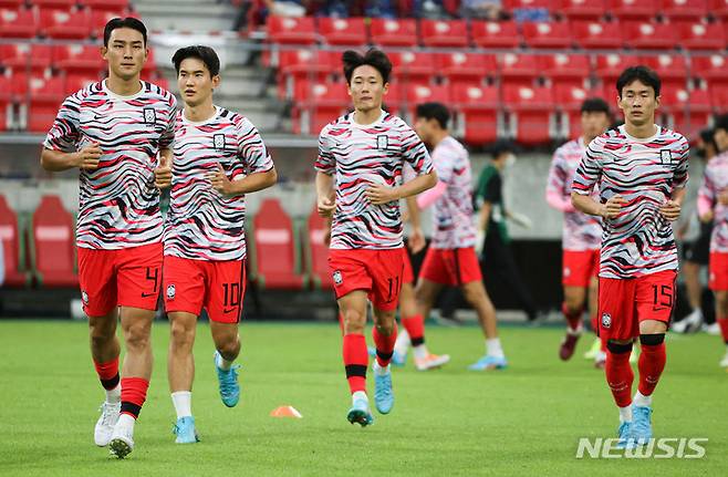 [나고야(일본)=뉴시스] 권창회 기자 = 27일 오후 일본 아이치현 도요타 스타디움에서 열린 2022 동아시아축구연맹(EAFF) E-1 챔피언십(동아시안컵) 3차전 대한민국과 일본의 경기를 앞두고 대한민국 대표팀 선수들이 훈련하고 있다. 2022.07.27. kch0523@newsis.com