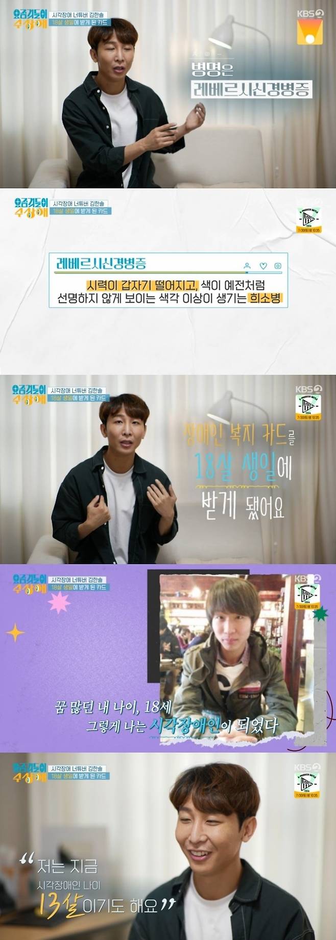 7월 27일 방송된 KBS2 '요즘 것들이 수상해'에서는 시각장애인 유튜버 김한솔이 게스트로 출연했다.