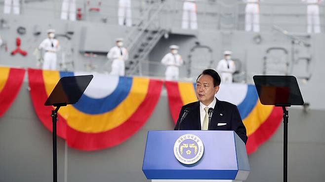 윤 대통령은 "우리 군은 제2의 창군 수준의 국방 혁신을 통해 과학기술강군으로 도약할 것"이라며 "신해양강국을 향한 우리의 꿈과 도전도 계속될 것이다. 우리 모두 힘을 모아 신해양강국으로의 꿈을 실현하자"고 강조했습니다.