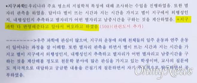 다른 관계자 D도 "학생들이 생기부 마감 전에 그 내용을 미리 받아 정정한 것은 사실"이라면서 "아이들이 생기부를 미리 확인하고 개별 수정하는 과정이 있었기 때문에 학교 측의 자체조사 결과에 수긍하기 어렵다"고 밝혔다.
