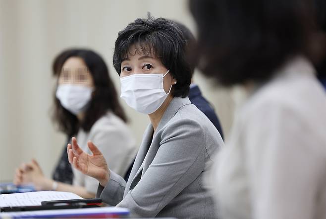 | ▲ 취임 후 첫 학교 현장 방문에 나선 박순애 사회부총리 겸 교육부 장관이 지난 14일 오후 서울 강서구 방화초등학교에서 간담회를 갖고 발언하고 있다. 박 부총리는 이날 학교 내 협력적 학생 성장 지원을 위한 현장 의견을 수렴하고 학교 급식 및 방역 상황을 점검했다. |