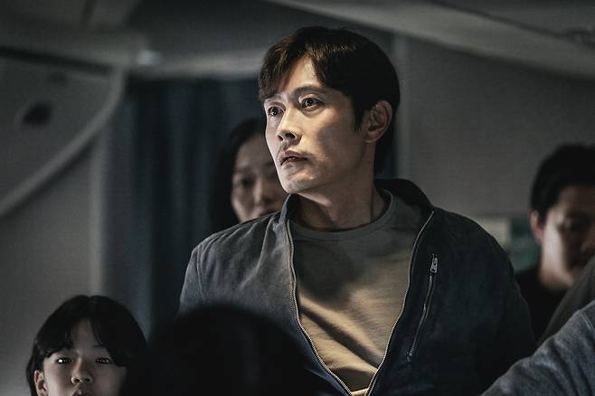 | ▲ 영화 <비상선언>에서 딸 아이를 위해 공황장애를 딛고 비행기에 탑승한 재혁 역의 배우 이병헌. |
