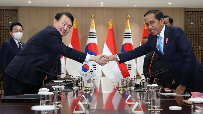 윤석열 대통령은 조코 위도도(이하 조코위) 인도네시아 대통령과의 첫 정상회담에서 "경제가 안보, 안보가 경제인 시대에 공급망 안정화 같은 양국 간 경제안보 협력은 매우 중요하다"고 밝혔습니다.