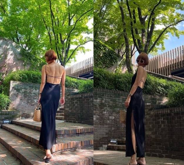 공개된 사진 속 최은경은 문의가 쏟아졌던 원피스를 입고 포즈를 취하고 있다. 등판이 훤히 파이고 허벅지까지 옆트임이 있는 원피스는 시상식 드레스 못지않게 과감한 포인트로 눈길을 끌었다.