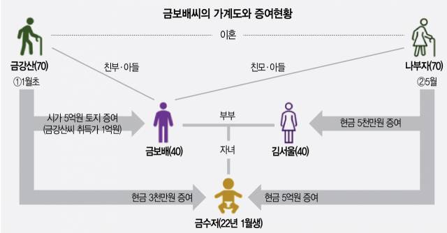 금강산(부) → 금보배(자) : 토지 5억 원 증여