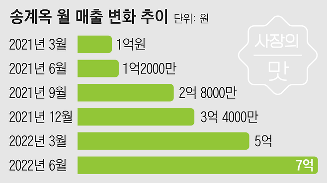 “잠실 본점은 작년 3월에 개업했는데 첫 달 매출이 1억원을 넘었어요. 생각보다 잘 나와서 놀랐죠. 1년 3개월이 지난 올 6월, 4개 가게의 총 매출은 7억원 정도입니다. 브랜드 전체로 보면 7배 늘어난 거죠. 평균을 내면 지점당 월 매출은 1억7500만원 정도 됩니다.”