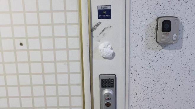 게시글에 첨부된 사진에는 119 구조대가 C 세대의 현관문을 강제로 열었던 흔적이 고스란히 담겼습니다.