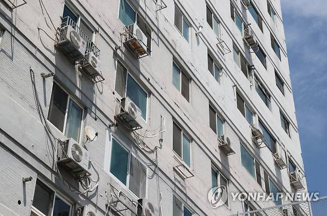 (서울=연합뉴스) 류효림 기자 = 지난달 푹푹 찌는 무더위에 전력수요가 역대 최고치를 기록한 것으로 나타났다. 전력 수요가 급증하면서 여유 전력 수준을 보여주는 공급예비율은 한때 7% 초반대까지 떨어져 약 3년 만에 최저 수준을 나타냈다. 사진은 1일 오후 서울 시내 한 건물에 설치된 에어컨 실외기 모습. 2022.8.1