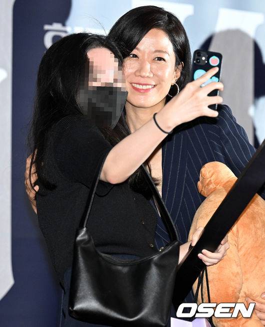 배우 전혜진이 쇼케이스에서 팬과의 시간을 보내고 있다.