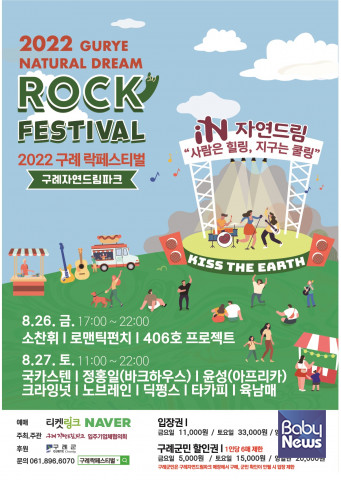 전주의 ‘점프’에 가성비로 도전장을 낸 ‘2022 구례 자연드림 락페스티벌’은 26일과 27일에 구례 자연드림파크에서 개최된다. 첫날 26일에는 소찬휘, 로맨틱펀치, 406호 프로젝트가 공연을 하고 27일에는 육남매, 크라잉넛, 타카피, 딕펑스, 노브레인, 정홍일(바크하우스), 윤성(아프리카)이 무대에 오르며, 국카스텐이 헤드라이너로 공연한다.