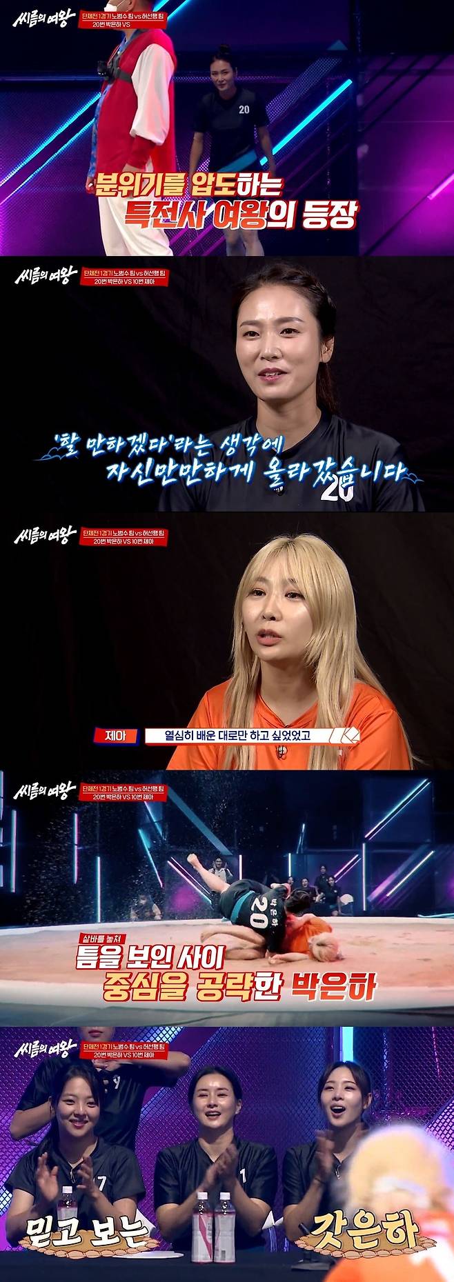 8월 2일 방송된 tvN STORY∙ENA '씨름의 여왕'에서는 단체전1경기가 펼쳐졌다.