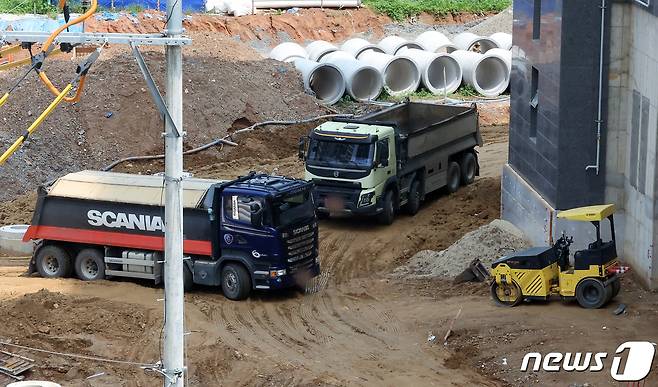 사진은 4일 경기도 고양시의 한 건설현장에서 운행 중인 덤프트럭. 2022.8.4/뉴스1