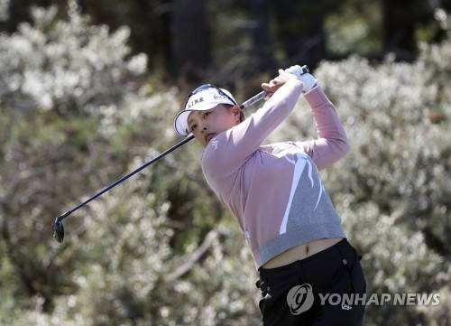 Jin Young Ko of South Korea at her tee shot from the 3rd during the first round of the Women's British Open golf championship, in Muirfield, Scotland Thursday, Aug. 4, 2022. (AP Photo/Scott Heppell)