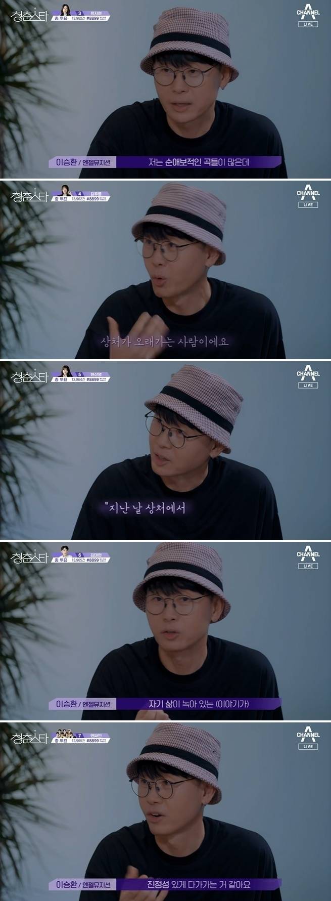 8월 4일 방송된 채널A '청춘스타'에서는 파이널 무대를 앞둔 '싱어송라이터파'를 만나 조언과 격려를 전하는 이승환의 모습이 담겼다.