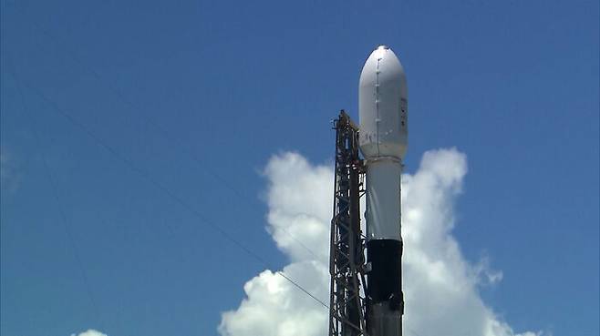 미국의 로켓이지만 상단에는 '대한민국의 달 궤도선' 글자가 선명합니다.