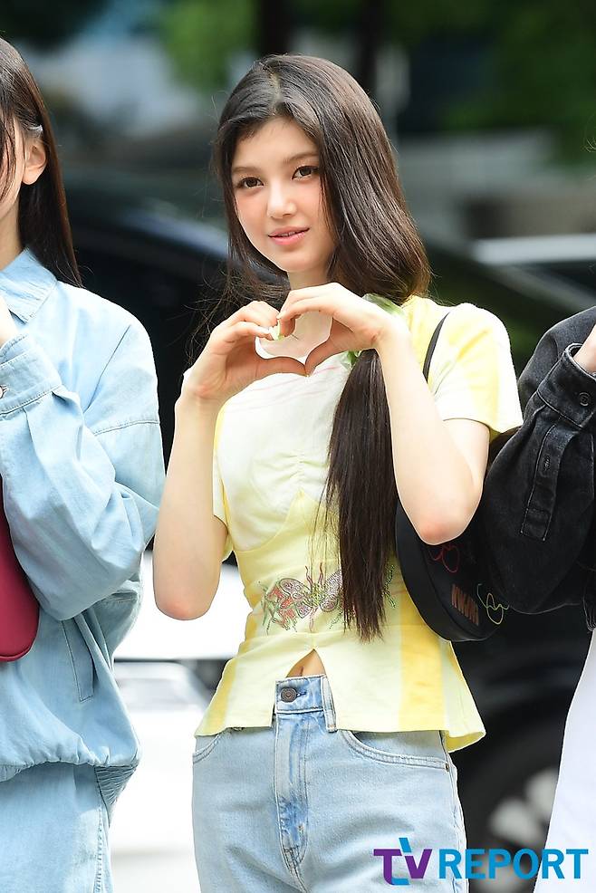 [TV리포트=백수연 기자] 그룹 뉴진스 다니엘이 5일 오전 서울 영등포구 여의도동 KBS 신관에서 진행된 KBS '뮤직뱅크' 출근길에 참석하고 있다.