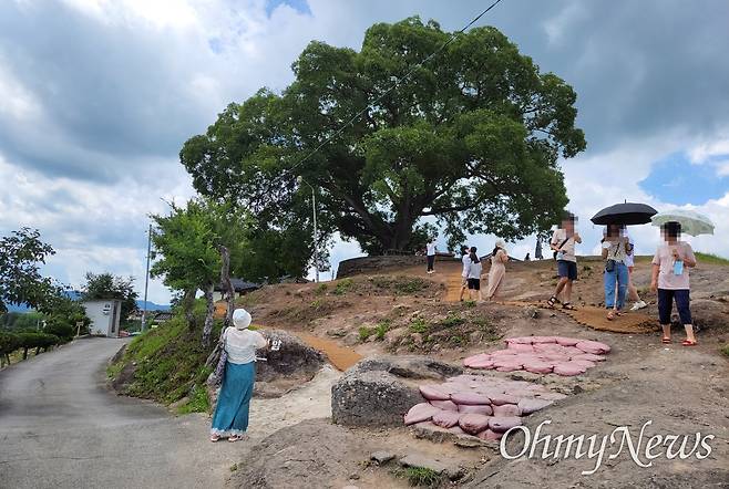 그는 "팽나무 주변에 어른 무릎 높이 이상 풀이 자라고 있었는데 '우영우 팽나무'를 찾는 관광객을 수용하려고 지난 7월말 의창구청이 모두 제거했다. 이후 인파가 이어지면서 초지가 나지로 변했다"고 전했다.