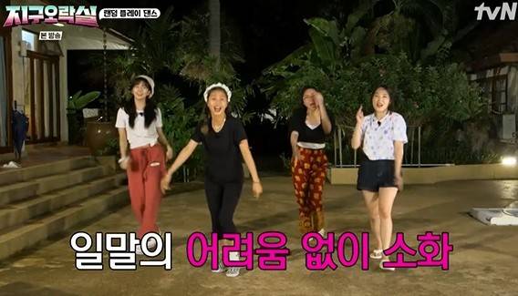 '지구오락실' 멤버들인 이은지, 미미, 이영지, 안유진이 랜덤 플레이 댄스로 단합력과 예능감을 대방출했다.