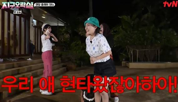 아이브의 ‘일레븐’ 안무를 성공한 후 엔딩포즈를 잡는 멤버들. 이영지, 이은지 등 과한 모션의 초보자들과 오마이걸 미미, 아이브 안유진 등 여유로운 경력자들의 극과 극 엔딩포즈가 웃음을 자아냈다. 특히 “멤버들아 보고 있니?”라며 윙크로 투머치 엔딩 포즈를 이어가는 안유진의 과몰입 모습에 나영석 PD는 아이돌 현직인 미미에게 “정상적인 거에요?”라고 물었다. 이에 미미는 “정확히 비정상적이다. 제가 정말 새로이 보는 돌아이다. 눈이 돌았다”라고 외치며 폭소를 자아냈다.