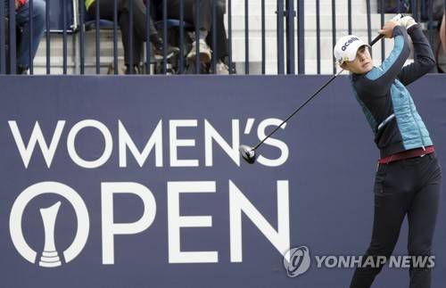 United States' Nelly Korda plays her tee shot from the 1st tee during the third round of the Women's British Open golf championship, in Muirfield, Scotland Sunday, Aug. 7, 2022. (AP Photo/Scott Heppell)