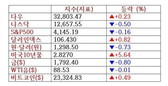 금리가 뛰면서 기술주들은 하락했다. 애플(-0.14%), 마이크로소프트(-0.26%), 알파벳(구글 모회사·-0.55%), 아마존(-1.24%), 테슬라(-6.63%), 메타(페이스북 모회사·-2.03%) 등은 모두 하락했다.