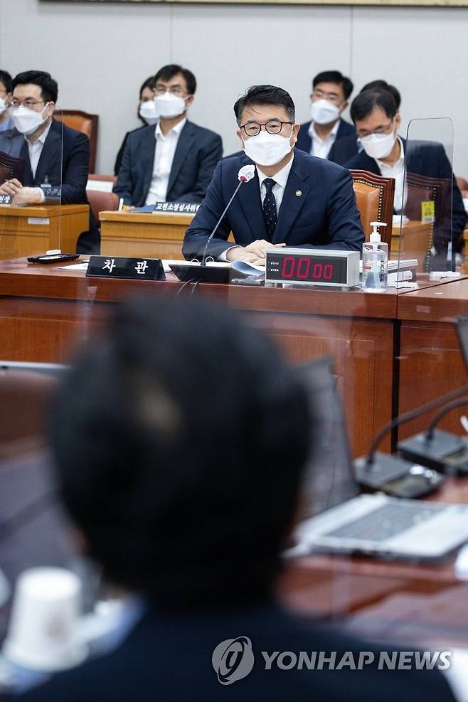 (서울=연합뉴스) 이정훈 기자 = 장상윤 교육부 차관이 9일 오전 국회에서 열린 교육위원회 전체회의에서 의원 질의에 답변하고 있다. 2022.8.9 [국회사진기자단]
