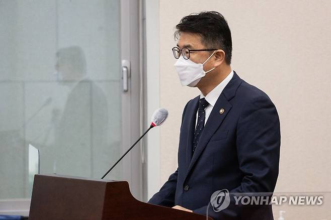 (서울=연합뉴스) 이정훈 기자 = 장상윤 교육부 차관이 9일 오전 국회에서 열린 교육위원회 전체회의에서 업무보고를 하고 있다. 2022.8.9 [국회사진기자단]