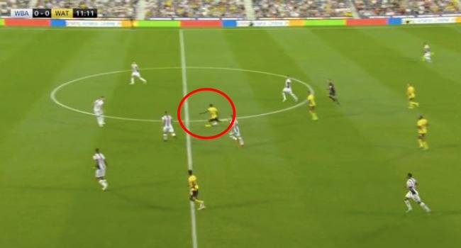 선제골은 왓포드에서 먼저 나왔다. 전반 12분 이스마일라 사르가 하프 라인 부근에서 공을 잡았다. 이후 골문을 한 번 쳐다보더니 그대로 강력한 오른발 슈팅을 때렸다. 공은 정확하게 골문 쪽으로 향했고, 높은 위치까지 올라와 있던 WBA의 데이비드 버튼 골키퍼는 손을 뻗어봤지만 속수무책으로 득점을 허용하고 말았다.