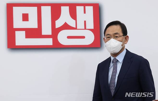 [서울=뉴시스] 고범준 기자 = 국민의힘 비상대책위원장으로 선출된 주호영 의원이 9일 서울 여의도 국회에서 취임 기자회견을 하기 위해 들어서고 있다. (공동취재사진) 2022.08.09. photo@newsis.com