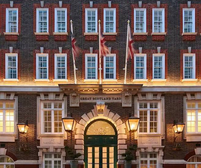 경찰청과 애프터눈 티 세트. 무슨 ‘환장’의 조합이냐고? 옛 런던 광역 경찰국의 별칭인 스코틀랜드 야드(Scotland Yard) 자리에 럭셔리 호텔 하얏트가 들어섰다. 1820년대에 지어진 경찰 본부는 빅토리아 시대에 형사들이 잭 더 리퍼 사건을 수사했던 곳이기도 하다. 이 호텔은 과거 분위기를 살려 경찰에 관련한 전시를 비롯한 경찰을 테마로 한 분위기로 꾸며져 있다. 호텔 곳곳의 역사적 물품들을 둘러봤다면, 유일하게 영국 왕실 조달 허가증을 갖고 있는 향수 브랜드 프롤리스 런던(Floris London)과 협업한 호텔 시그니처 애프터눈 티를 즐겨보자. 여왕의 정원에서 딴 귀리, 꿀, 배턴버그 케이크 등의 향을 담은 차와 함께 치킨, 훈제 연어 샌드위치, 스콘 등을 즐길 수 있다.