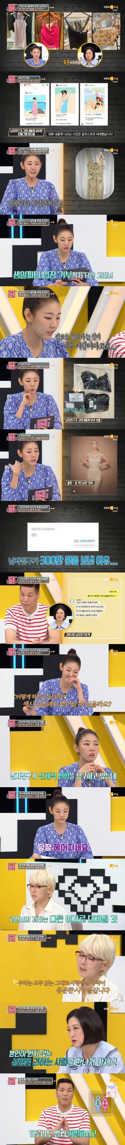 뿐만 아니라 이 남자친구는 여자친구에게 직접 노출 의상을 선물, 본인의 생일파티 때 입고 올 것을 당부하기도. 하지만 과한 노출 디자인에 여자친구는 선물한 옷을 입고 오지 않았고, 남자친구는 "자기, 그 선물 들고 우리 집에 가 있어라. 내가 생일파티 빨리 끝내고 가겠다. 내가 선물까지 주면서 부탁했는데 안 입고 온 이유가 뭐냐. 나 골탕 먹이려 그런 거냐. 난 내 여자친구가 다른 사람 눈에도 예쁘게 보였으면 좋겠단 말이야. 나 기분 나쁘니까 내 친구들하고는 다음에 만나자"라고 분노했다.