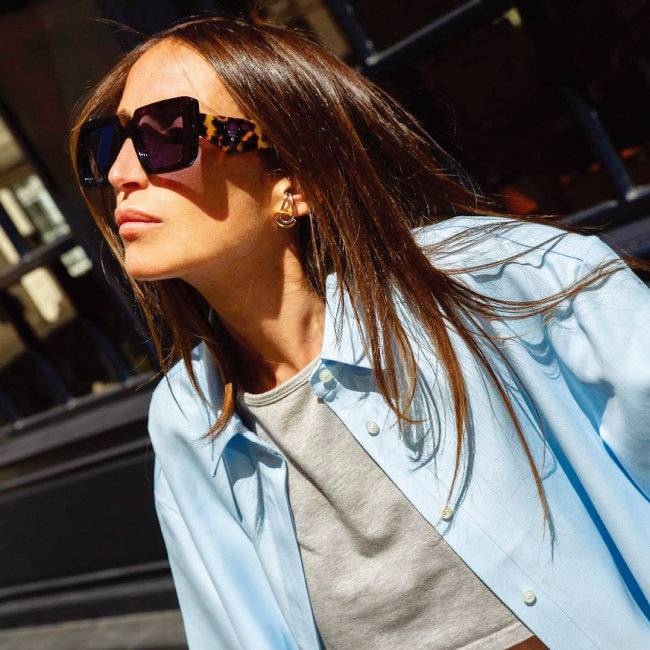 패션 인플루언서이자 디자이너·스타일리스트·패션 디렉터 등 다방면에서 활동하고 있는 블랑카 미로는 패턴이 강한 룩에 별다른 액세서리 없이 선글라스만을 매치하는 시크한 스타일을 즐긴다. 브라운 컬러 선글라스는 블랙 선글라스를 매치했을 때보다 부드러운 분위기를 연출한다.