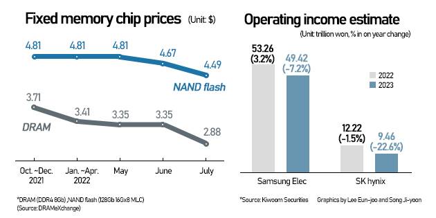 A down cycle is forecast for Samsung Electronics and SK hynix as prices of DRAM and NAND flash continue to fall.