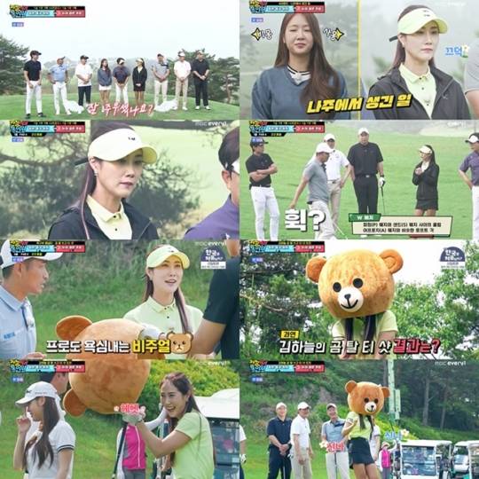 그뿐만 아니라 뒤이어 4번 홀에서 김하늘은 축구팀이 벌칙으로 받은 ‘곰인형 탈 쓰고 티샷하기’에 대한 관심을 드러내며 도전에 나섰다. 얼굴을 모두 가려 시야가 극히 제한된 상황에도 김하늘은 방향을 확인하자마자 감각에 의지해 호쾌한 티샷을 날리며 끝내 공을 홀 가까이에 내려놓았다.