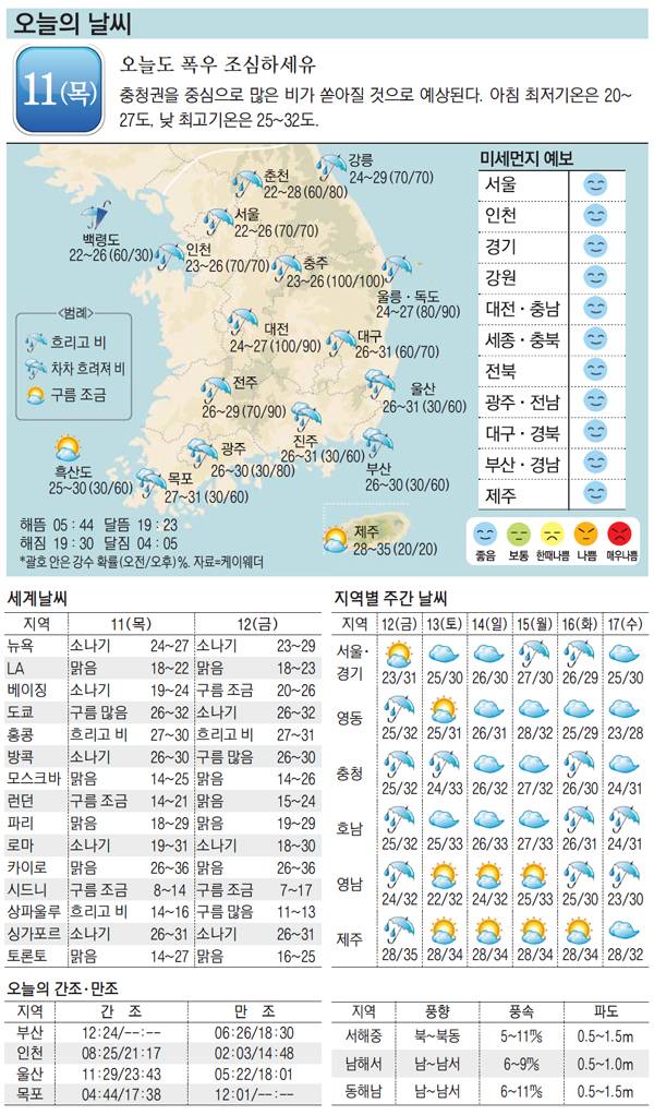 [오늘의 날씨] 11일, 오늘도 폭우 조심하세유