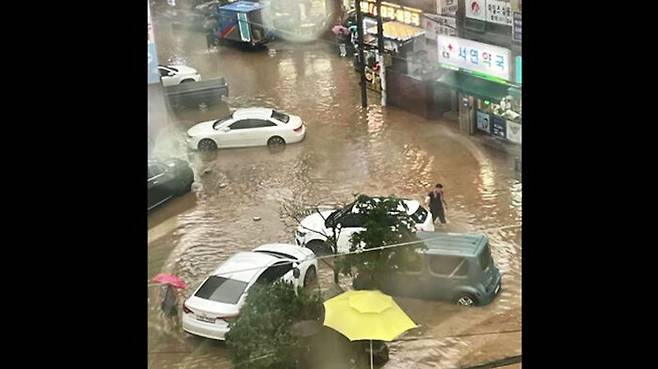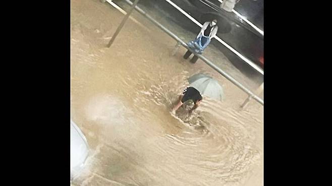 폭우로 침수된 경기도 의정부의 한 도로에 중년 남성이 나타나 배수로를 뚫으면서 금세 물이 빠져나갔다는 사연이 전해졌습니다.