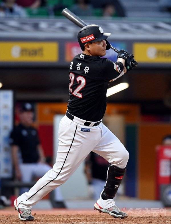 10일 인천 SSG 랜더스필드에서 ‘2022 신한은행 SOL KBO리그’ SSG 랜더스와 kt 위즈의 경기가 열렸다. 3회초 2사 1, 2루에서 kt 장성우가 1타점 적시타를 날리고 있다.