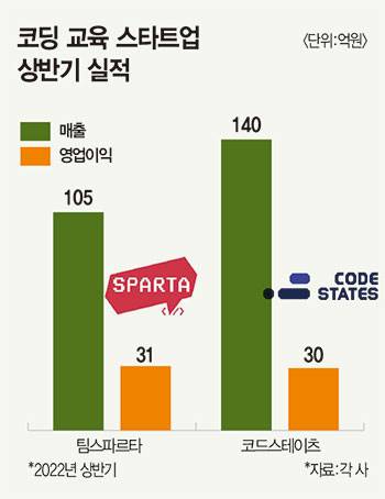 스타트업 업계가 전반적으로 어려움을 겪는 가운데, ‘나 홀로’ 질주를 이어가는 분야가 있어 주목받는다. 바로 ‘코딩 교육’ 업계다. 기업의 디지털 전환(DT), 정부의 개발자 지원 정책, 개발자 취업 붐 등 호재에 힘입어 상승세를 탔다. 코드스테이츠·팀스파르타 등 주요 코딩 교육 업체는 올해 상반기 매출이 지난해 전체 매출을 넘어섰다. 단순 성장세만 돋보이지 않는다. 빅3 3곳 모두 영업이익 ‘흑자’를 기록 중이다. 성장성은 물론, 재무적 안정성까지 갖춘 이들의 활약에 IT 업계의 시선이 쏠린다.