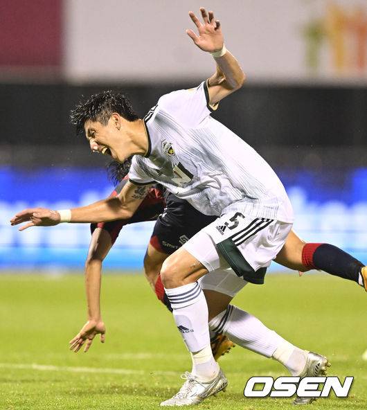 후반 전북 윤영선이 수비를 하는 과정에서 수원 이승우와 충돌하고 있다. 2022.08.10 /ksl0919@osen.co.kr