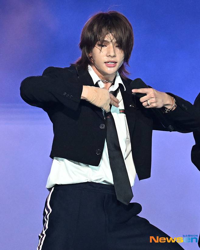 그룹 스트레이키즈 현진이 8월 10일 오후 서울 송파구 잠실종합운동장 주경기장에서 열린 서울 페스타(SEOUL FESTA) 2022 개막공연 ‘K-팝 슈퍼라이브’ 에서 무대를 펼치고 있다.