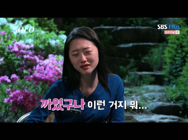이어진 광수의 모호한 말에 영숙은 "딱 까였다"라는 마음 속의 표현을 했다. 영숙은 제작진과의 대화에서 "광수가 말하는 데 거기서 더 좋아지더라. 아 짜증나, 아 재수없어"라면서 눈물을 쏟으며 웃었다. 이어 영숙은 "아, 술 괜히 마셨다"라며 민망한 듯 웃음도 지었다./osen_jin0310@osen.co.kr