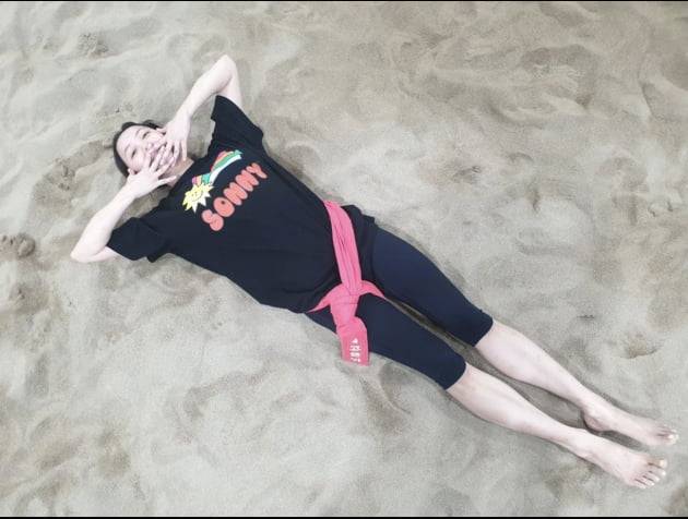 공개된 사진에는 모래판에 샅바를 맨 채 누워있는 고은아의 모습이 담겼다.