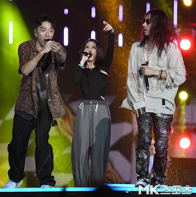 타이거 JK, 윤미래, 비지가 멋진 무대를 선보이고 있다.