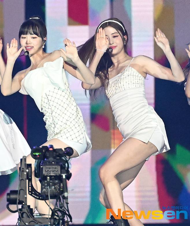 걸그룹 르세라핌 김채원, 허윤진이 8월 10일 오후 서울 송파구 잠실종합운동장 주경기장에서 열린 서울 페스타(SEOUL FESTA) 2022 개막공연 ‘K-팝 슈퍼라이브’ 에서 무대를 펼치고 있다.