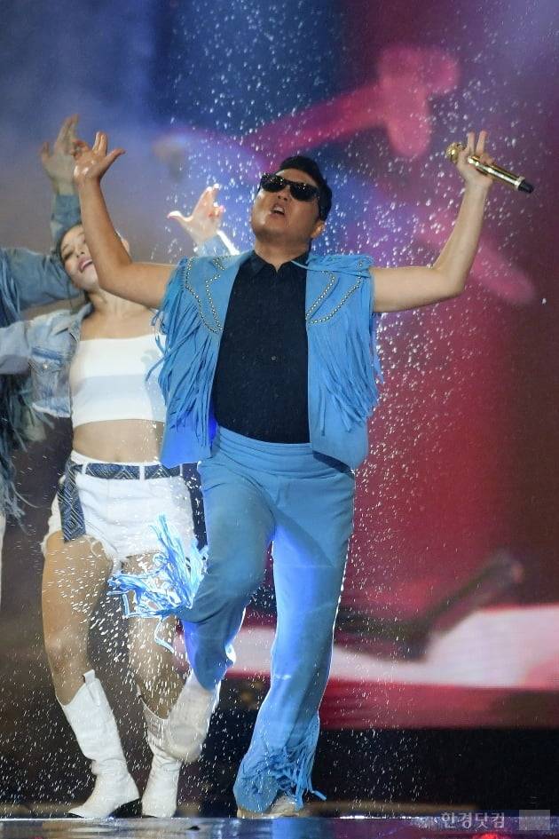 가수 싸이가 10일 오후 서울 잠실 종합운동장에서 열린 '서울페스타 2022 개막공연 <k-pop live="" super="">'에 참석해 공연을 선보이고 있다.