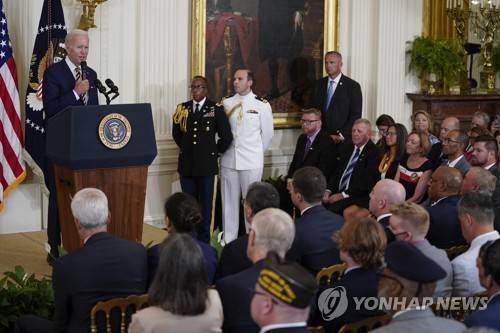 President Joe Biden speaks before signing the "PACT Act of 2022" during a ceremony in the East Room of the White House, Wednesday, Aug. 10, 2022, in Washington. (AP Photo/Evan Vucci)