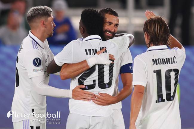 레알 마드리드는 11일 오전 4시(한국시간) 핀란드 헬싱키 올림픽 스타디움에서 열린 2022-23시즌 유럽축구연맹(UEFA) 슈퍼컵에서 프랑크푸르트를 2-0으로 제압하며 트로피를 들어올렸다. 슈퍼컵은 지난 시즌 UEFA 챔피언스리그(UCL) 우승팀과 UEFA 유로파리그(UEL) 우승팀이 대결을 펼치는 경기다. 레알이 UCL을, 프랑크푸르트가 UEL을 우승했다.